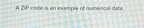 A Zip Code Is An Example Of Numerical Data. Web updated on march 17, 2019. Web it is trivial to slap a tostring () on a numeric value, use simple string manipulation to insert a hyphen or space or whatever for.
